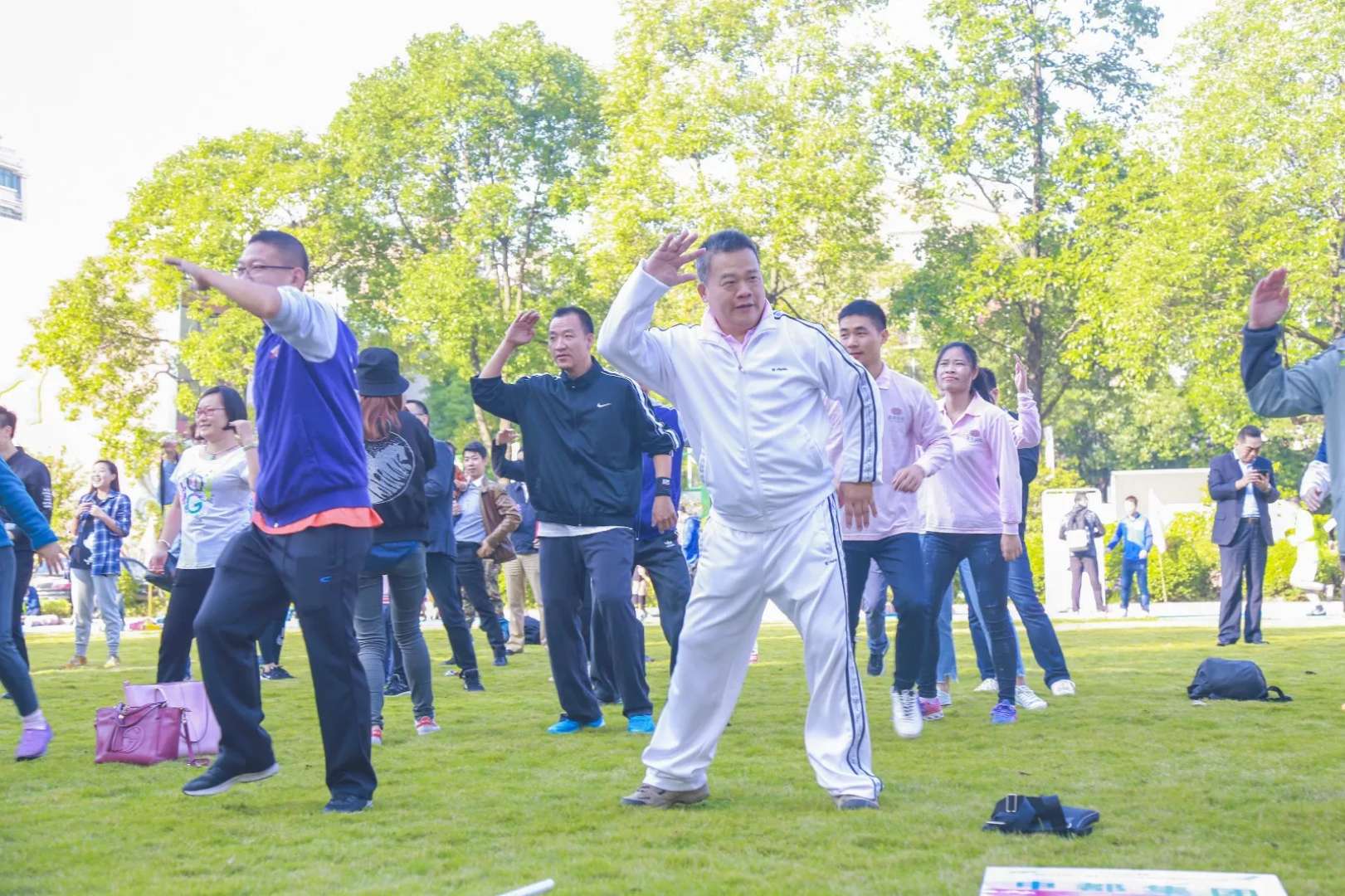 其次,在舞臺上下聯動的歡樂啦啦操中,運動會拉開了比賽序幕。
