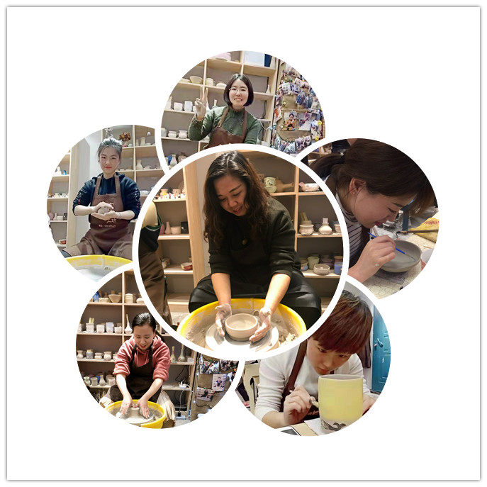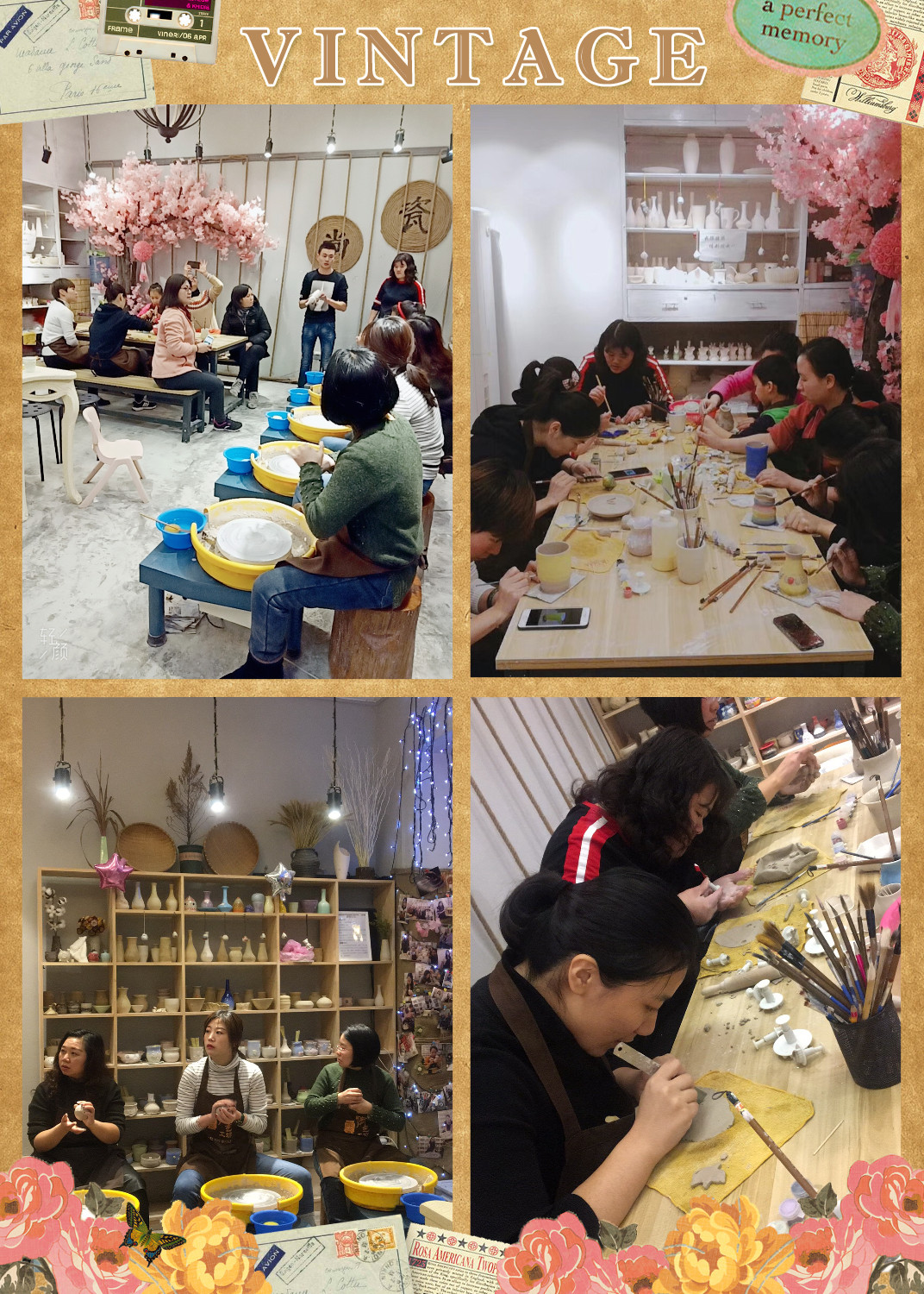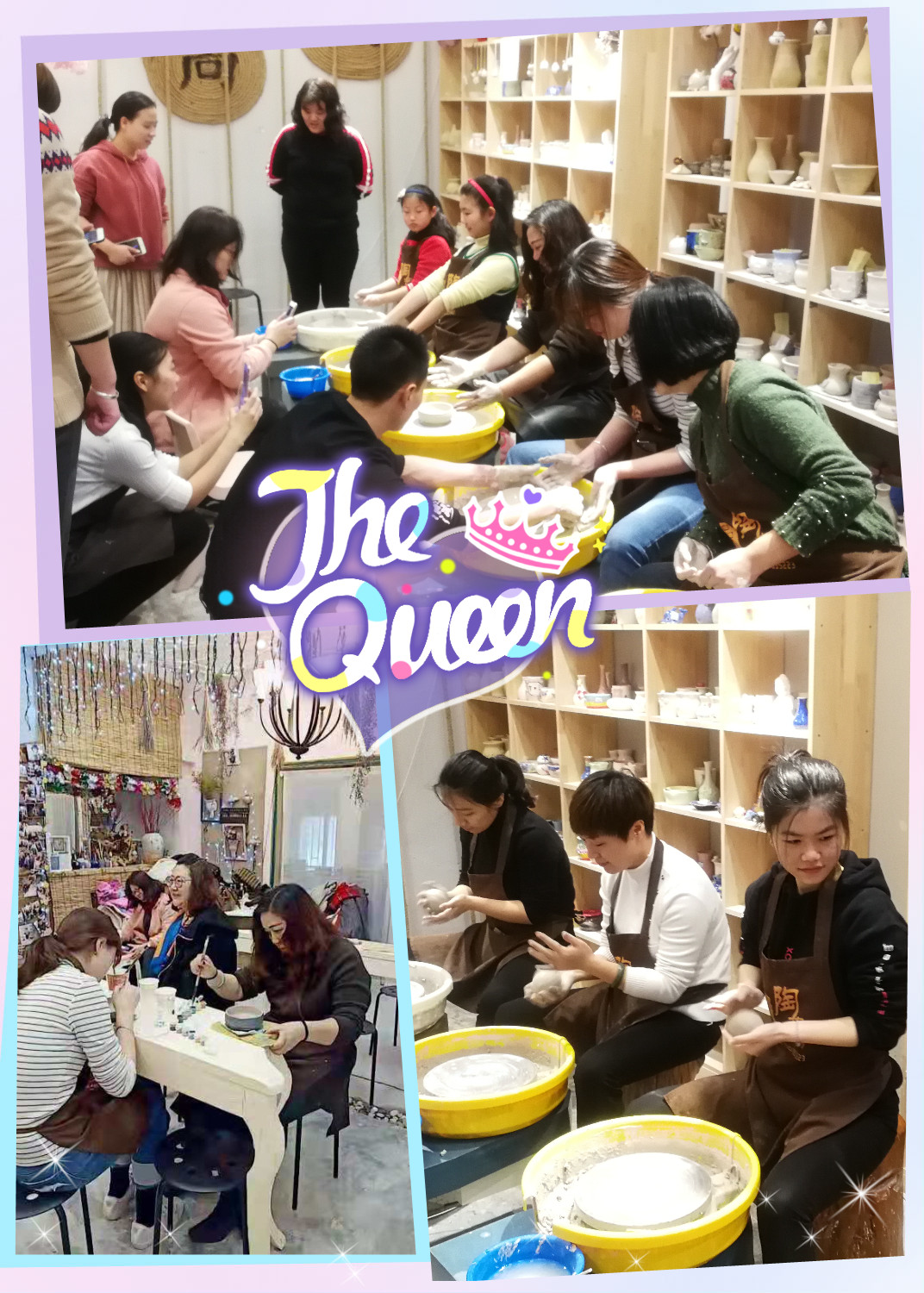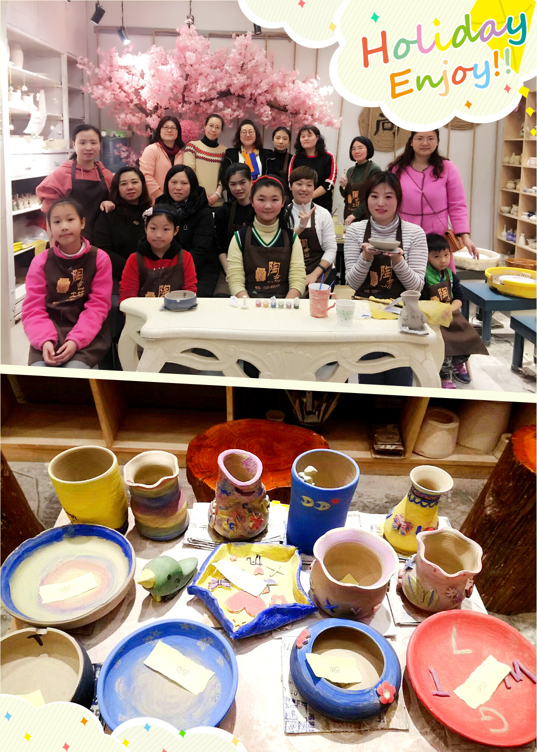 公司為大家安排了節日活動——陶藝DIY,女神們認真地聽老師介紹,開始機器拉坯,手工捏塑。
