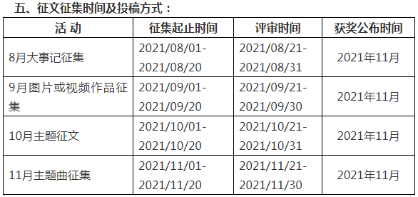 每項活動結束后,公司征集評審小組將本著公平、公正、公開的原則,對投稿作品進行評獎。第一項作品設五個平行的一等獎,每年一個;第二至第四項活動每項活動各設一等獎(1名)、二等獎(1名),所有評選結果于11月匯總公示,各獲獎作品將在公司三十五周年慶典活動現場進行表演和演繹并在公司網站、微信公眾號同時發布。公司對所有作品投稿人頒發紀念品,獲獎作品頒發獎金獎狀,以資鼓勵。