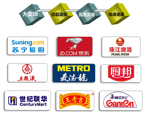 分銷代理招商:可自行完成產品從市場推廣、分銷代理、物流配送到市場服務的綜合經營業務,市場網絡遍布上海、江蘇、浙江、山東、安徽等華東地區。與江浙滬數百家二、三級分銷商合作,并通過這些分銷商,直接快速滲透可覆蓋的上萬家餐飲、加盟超市、夜店、名煙酒店、特渠等傳統渠道;另外與各類知名大型賣場、標超、便利店、高端超市等現代渠道和各類電子商務平臺,保持著良好的合作關系,擁有一支上百人、超強活躍的銷售團隊,成為華東一流的品牌運營商。